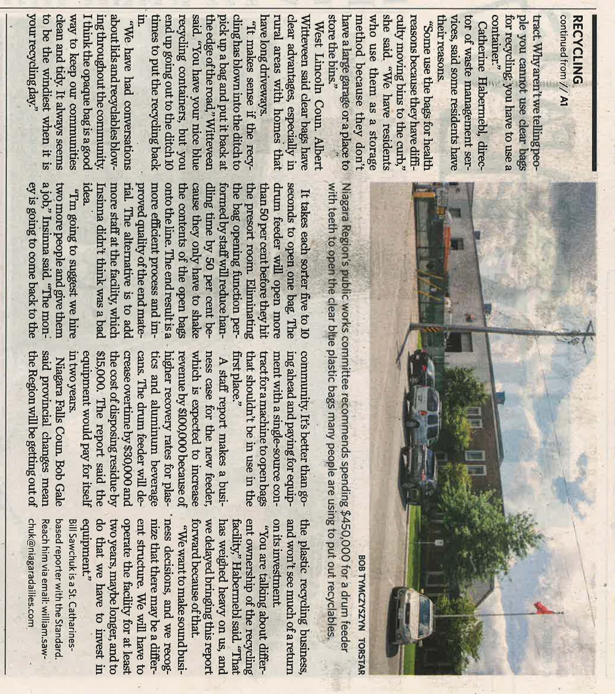 - Equipment would help deal with surge in use of clear bags : Public works committee debating whether to buy recycling equipment