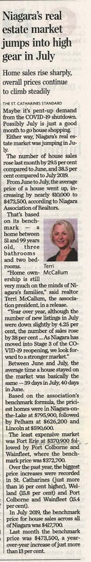 - COVID-19 pandemic / McCallum, Terri / real estate market / Niagara Association of Realtors