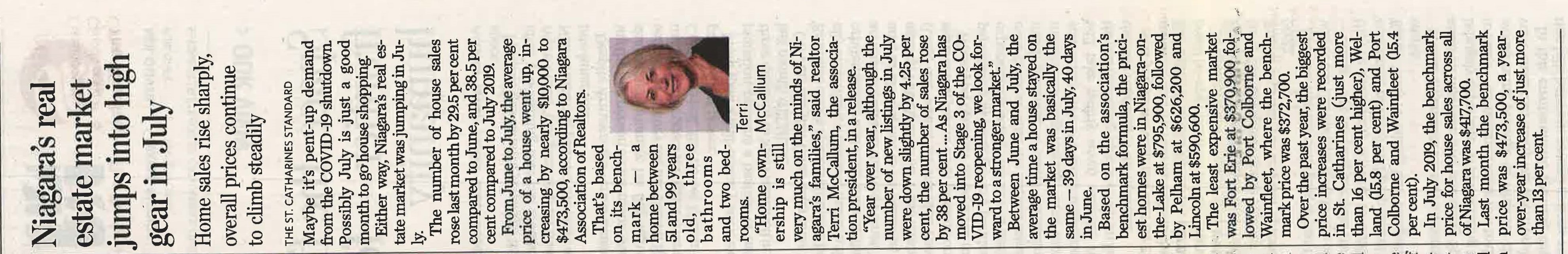 - Niagara's real estate market jumps into high gear in July : Home sales rise sharply, overall prices continue to climb steadily