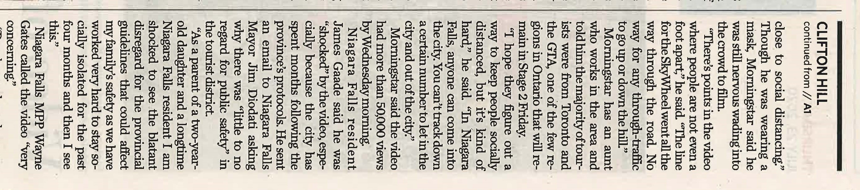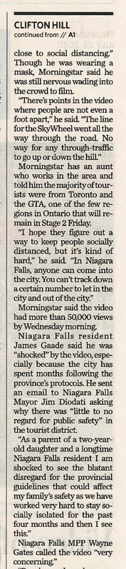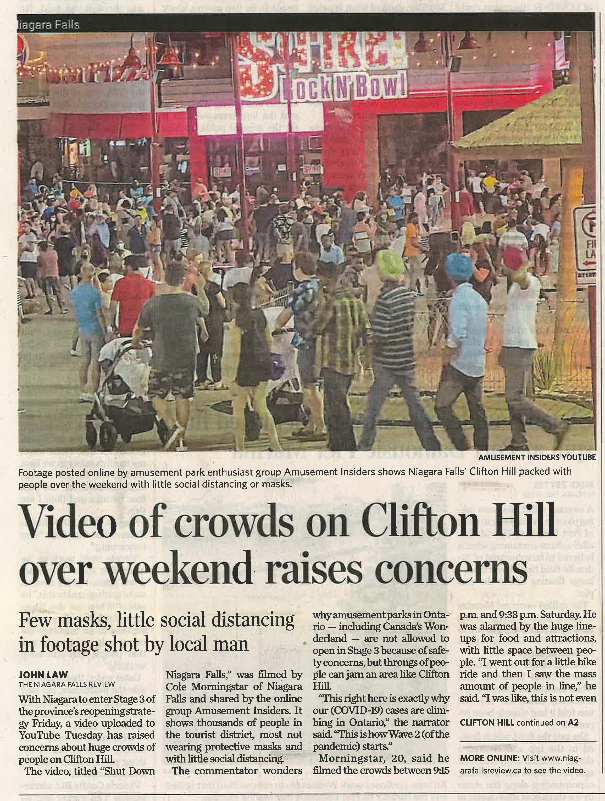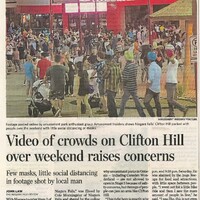 - Video of crowds on Clifton Hill over weekend raises concerns : few masks, little social distancing in footage shot by local man