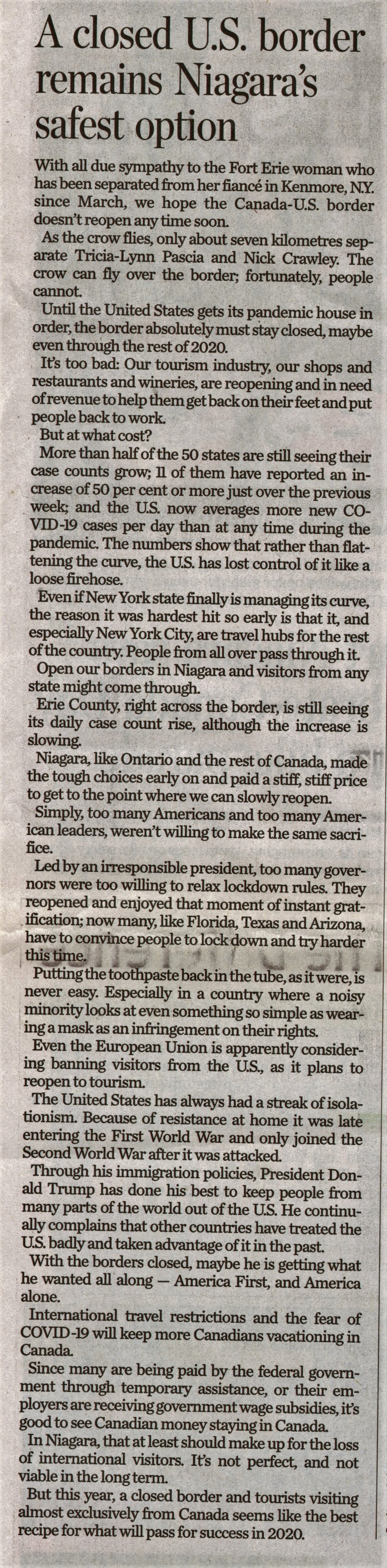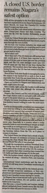 - Canada-U.S. border / tourism industry / COVID-19 pandemic / remain closed