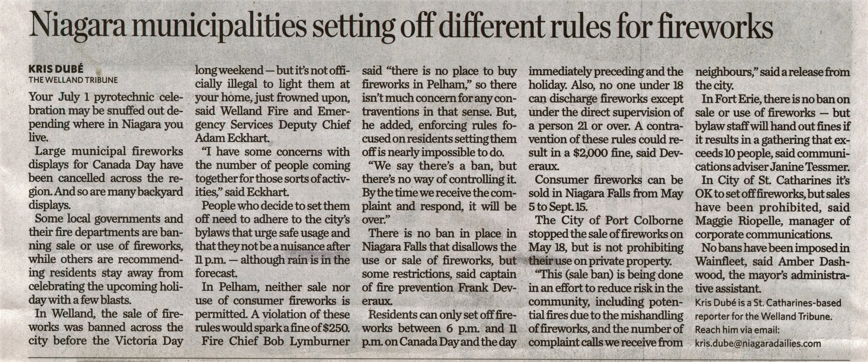 Canada Day fireworks / Deveraux, Frank / large firework displays cancelled / COVID-19 pandemic /