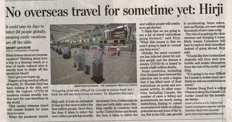 - Hirji, Mustafa Dr. / travel restrictions / borders closed / Ford, Doug / COVID-19 pandemic