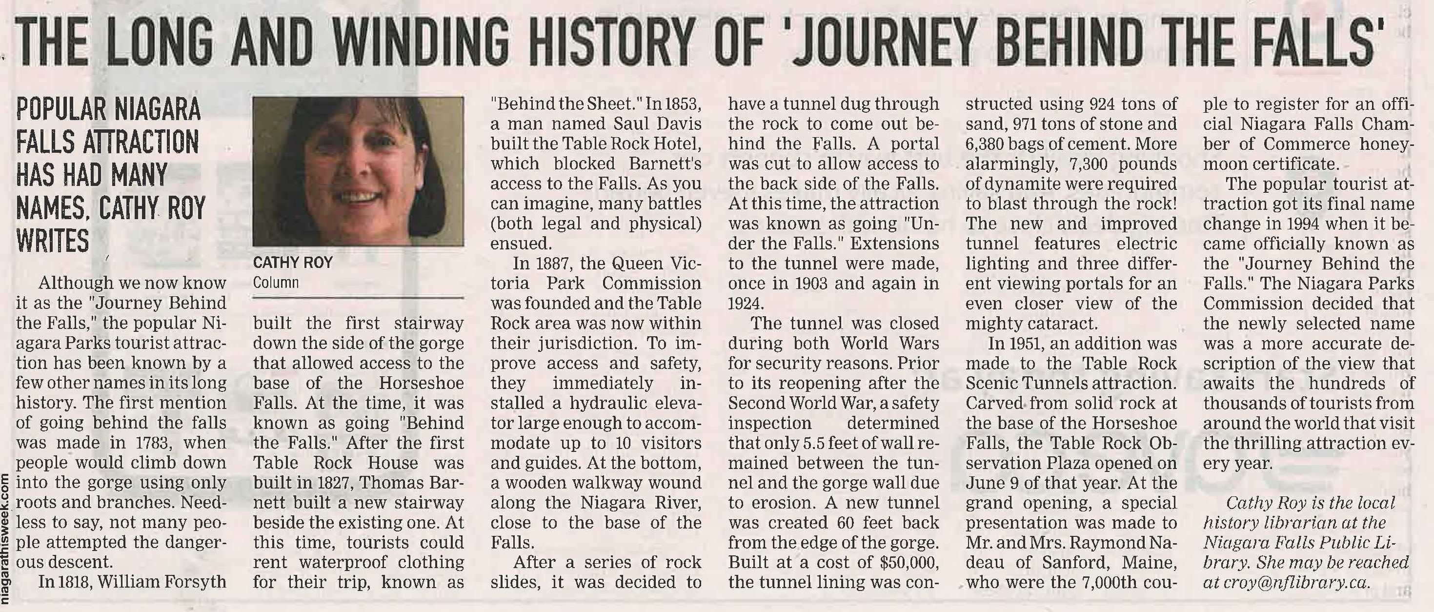 - The long and winding history of 'Journey behind the Falls' : Popular Niagara Falls attraction has had many names