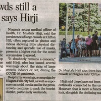 - Hirji, Mustafa Dr. / Clifton Hill / COVID-19 pandemic / large crowds /