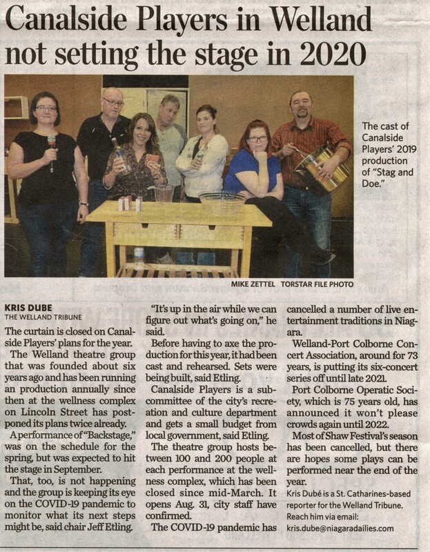 - Canalside Players in Welland not setting the stage in 2020