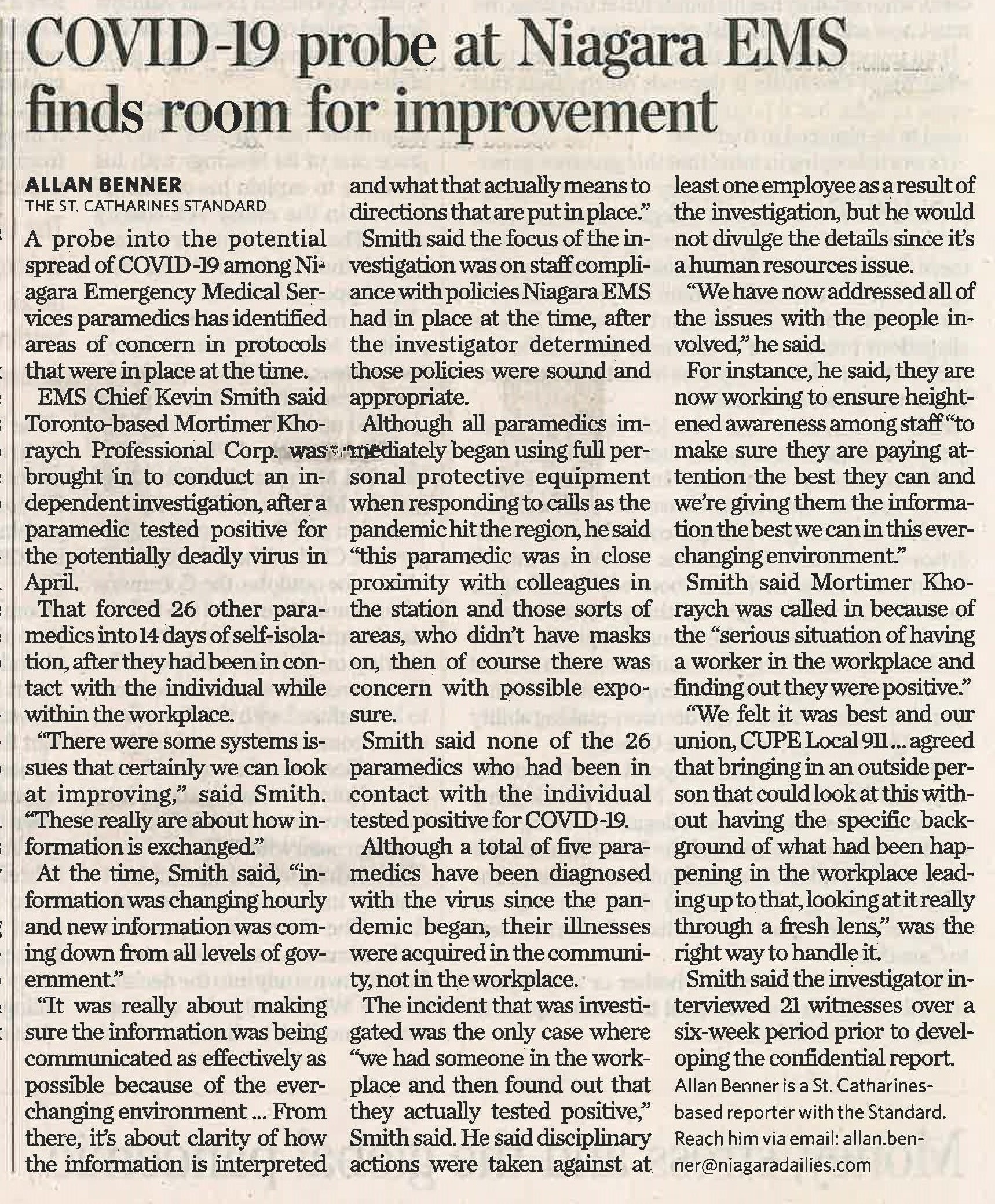 - COVID-19 probe at Niagara EMS finds room for improvement