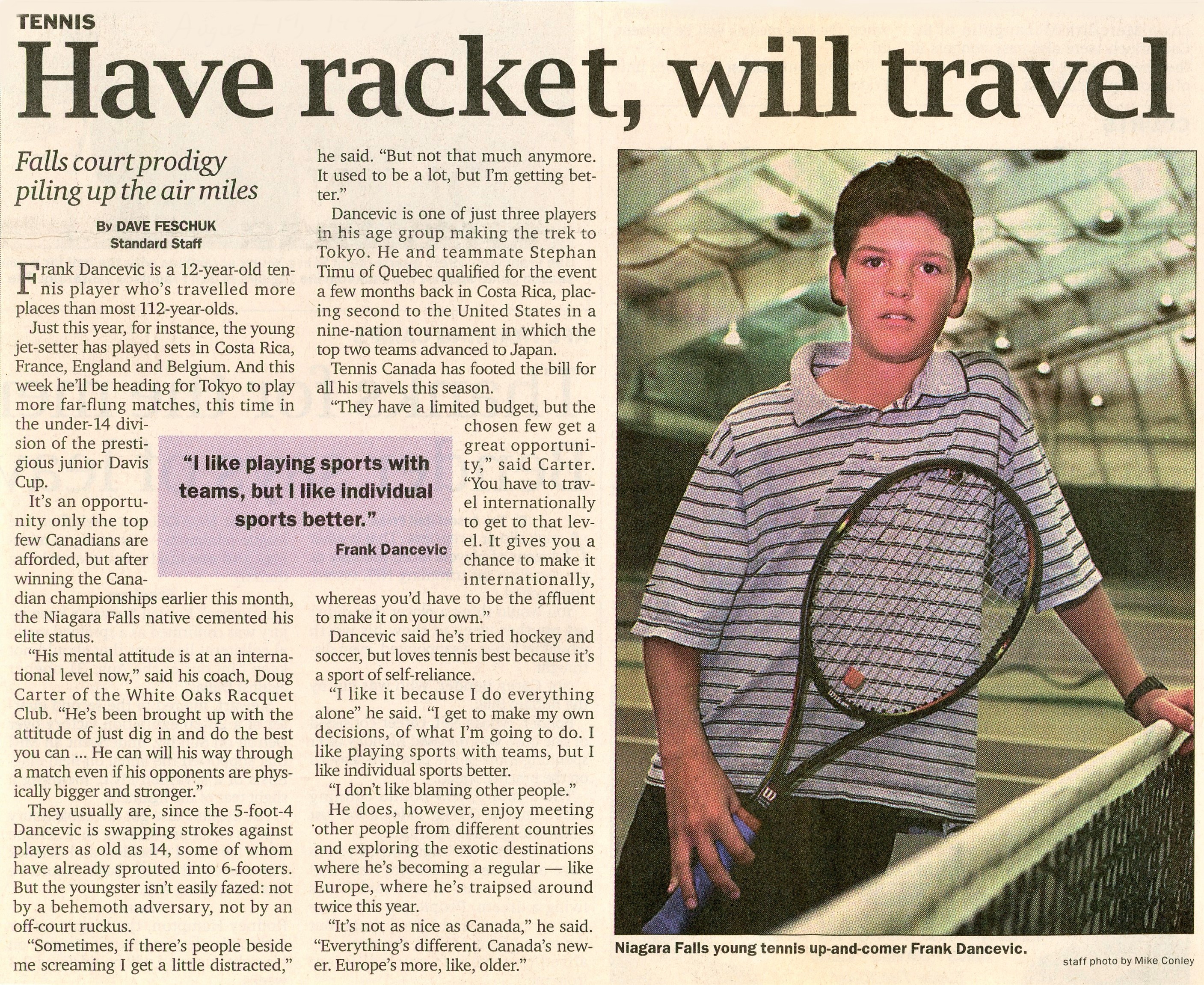 - Have racket, will travel : Falls court prodigy piling up the air miles
