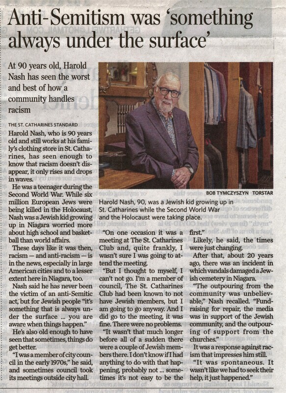 - Anti-Semitism was 'something always under the surface' : At 90 years old, Harold Nash has seen the worst and best of how a community handles racism