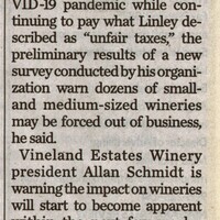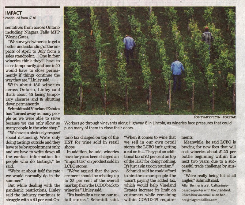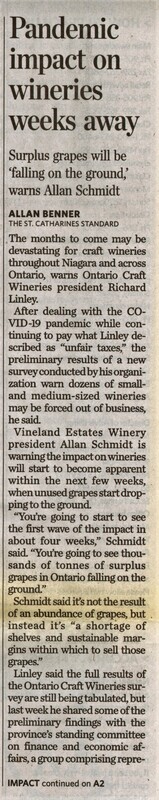 - Linley, Richard / Ontario Craft Wineries / COVID-19 pandemic / financial impact / Vineland Estates Winery / Schmidt, Allan