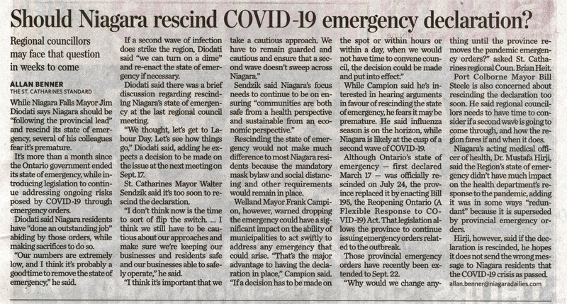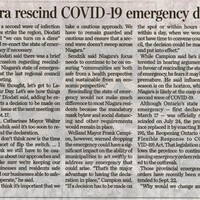 - Should Niagara rescind COVID-19 emergency declaration : Regional councillors may face that question in weeks to come