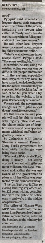 Local land registry office to close : Province to transition services to an on-line only format effective Oct. 9
