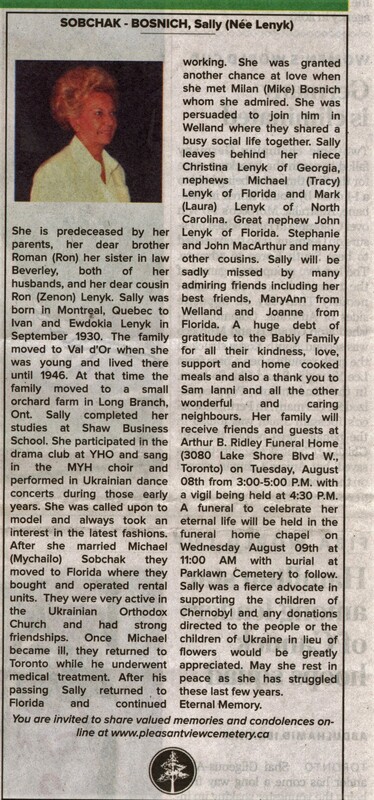 Sobchak-Bosnich, Sally (nee Lenyk)