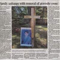 Family unhappy with removal of gravesite cross : City says wooden crosses not allowed at Victoria Cemetery