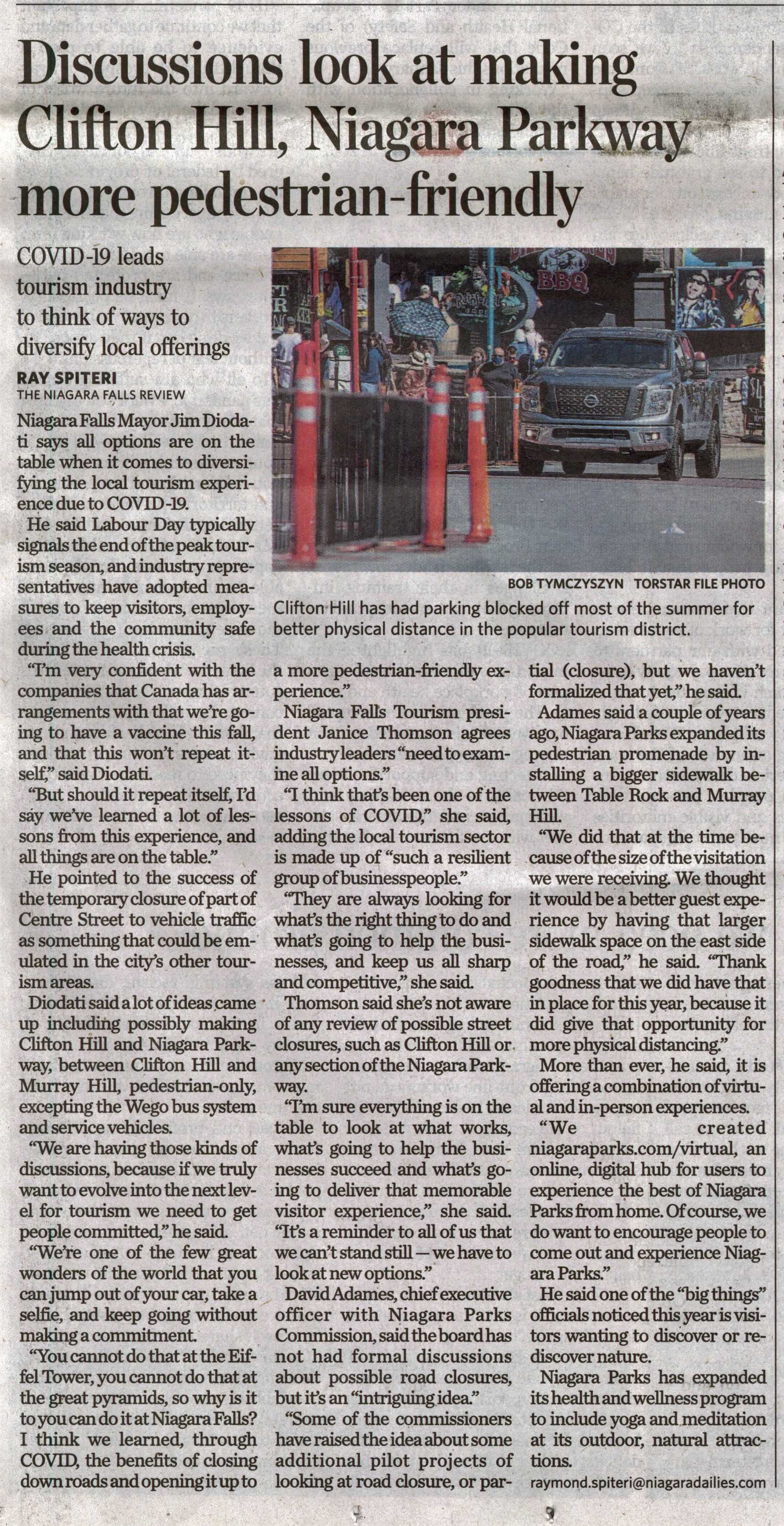 - Discussions look at making Clifton Hill, Niagara Parkway more pedestrian -friendly : COVID-19 leads tourism industry to think of ways to diversify local offerings