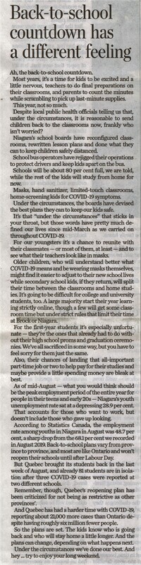 - COVID-19 pandemic / back to school / safety protocols / Niagara school boards