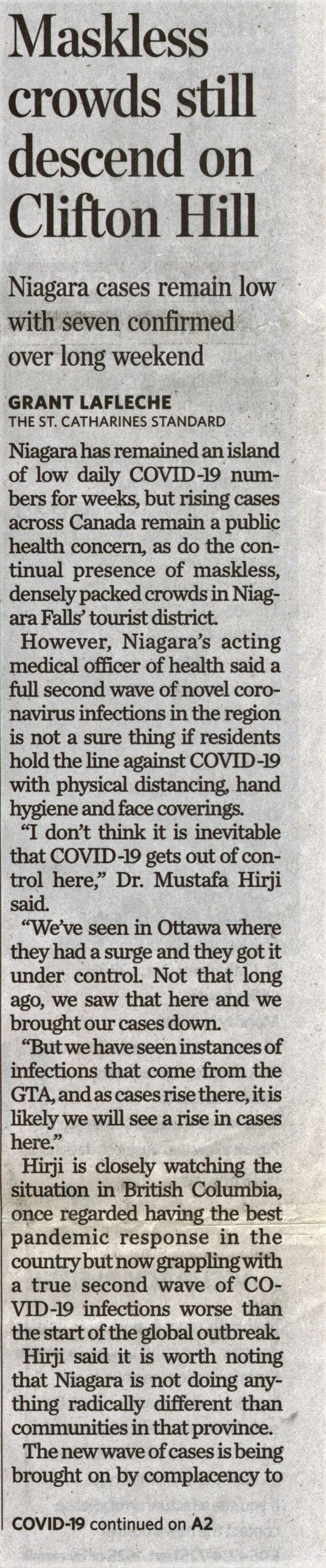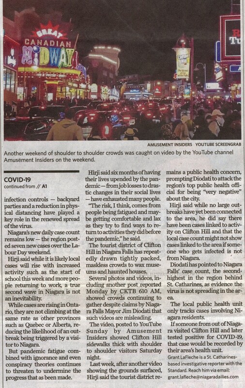 - Maskless crowds still descend on Clifton Hill : Niagara cases remain low with seven confirmed over long weekend