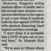 - Hirji, Mustafa Dr. / COVID-19 pandemic / Clifton Hill / crowds filmed / Diodati, Jim (Mayor)
