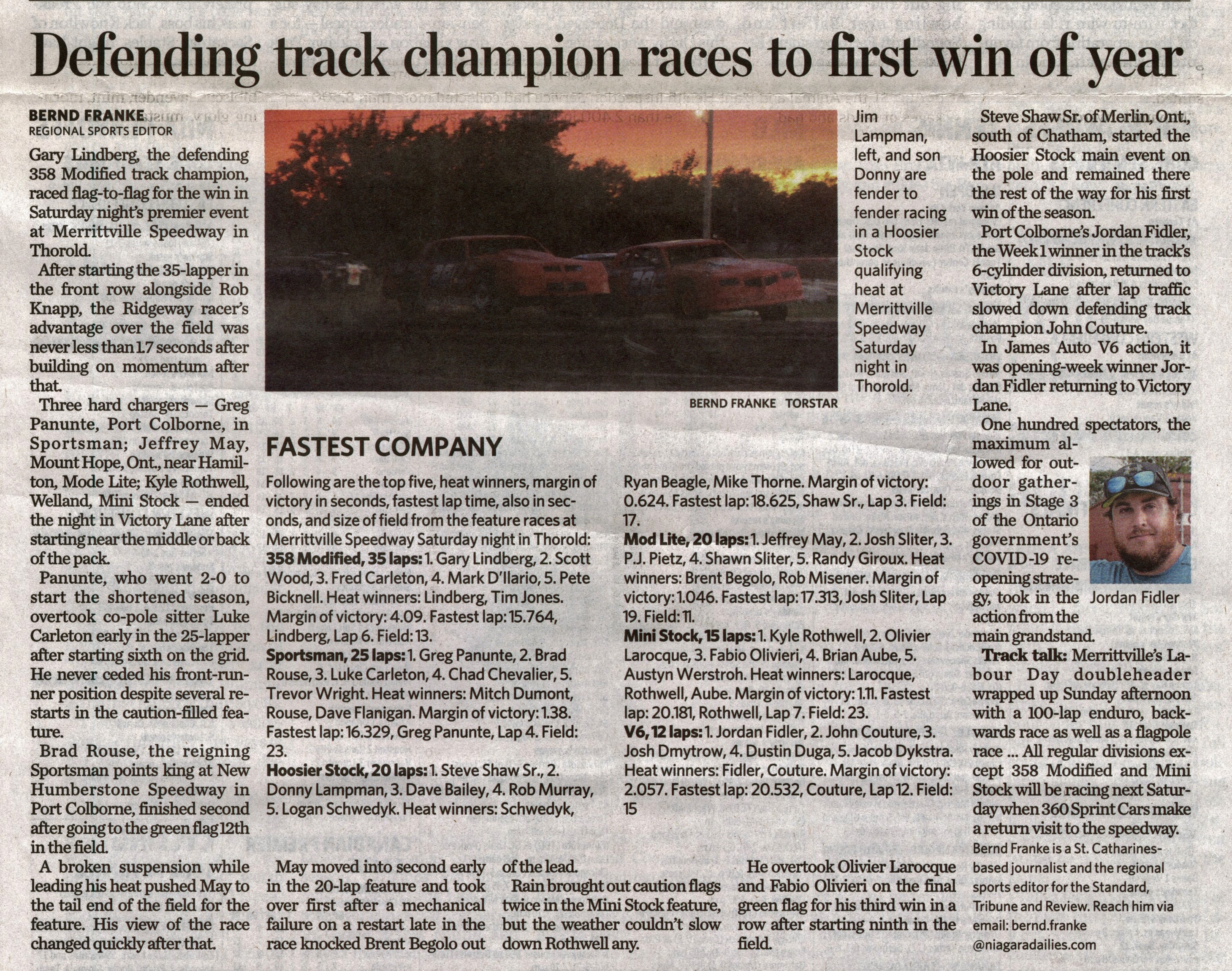 Lindberg, Gary / Marrittville Speedway / COVID-19