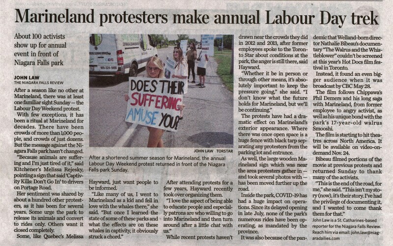 - Marineland / Labour Day weekend protest / COVID-19 pandemic / Bibeau, Nathalie / Demers, Phil / 'The Walrus and the Whistleblower'
