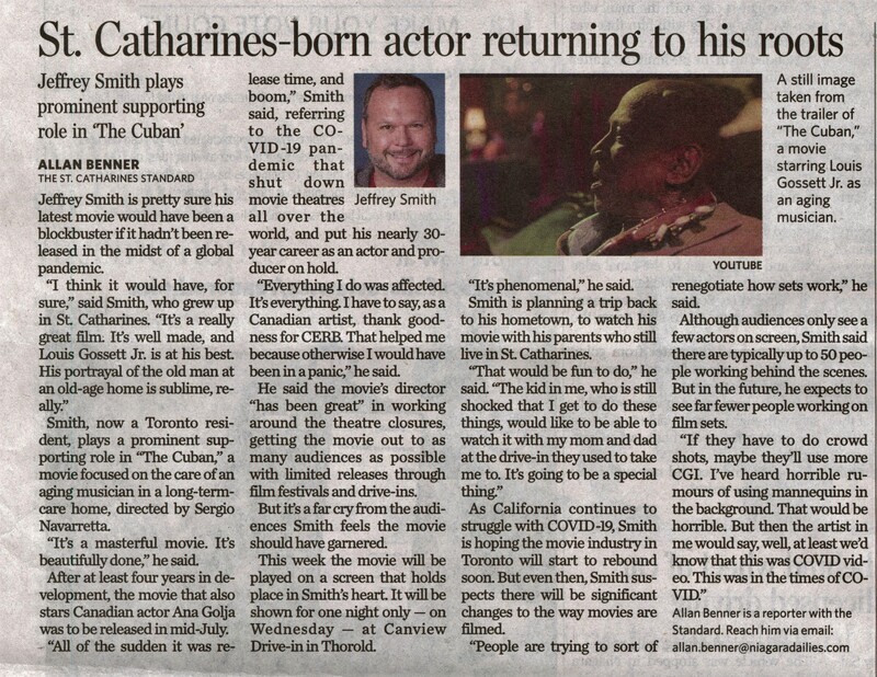- St. Catharines-born actor returning to his roots : Jeffrey Smith plays prominent supporting role in 'The Cuban'