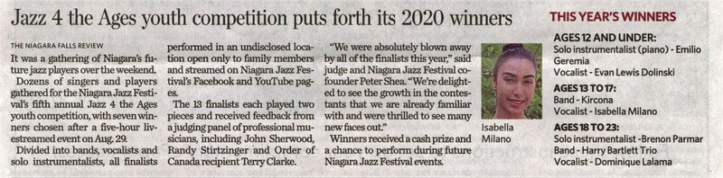 - Niagara Jazz Festival / Shea, Peter / Geremina, Emilio / Dolinski, Evan Lewis / Kircona / Milano, Isabella / Parmar, Brenan / Harry Bartlett Trio / Lalama, Dominique