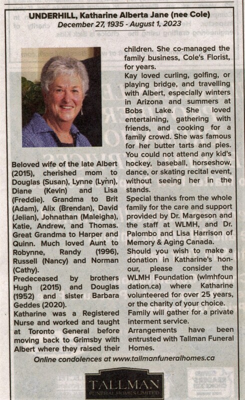 - Underhill, Katharine Alberta Jane (nee Cole)