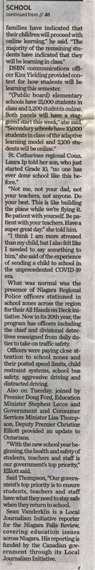 - Niagara District School Board / Niagara Catholic District School Board Barnett, Sue / Cipriano, Camillo / Greene, Maria / COVID-19 pandemic / safety protocol
