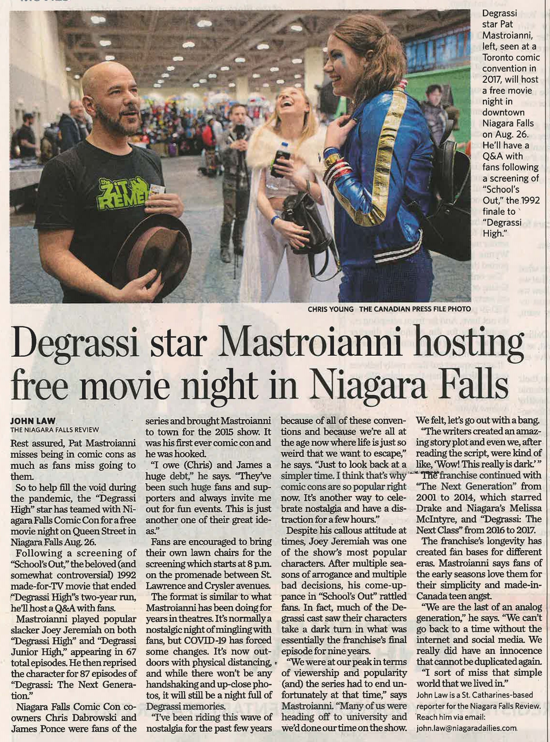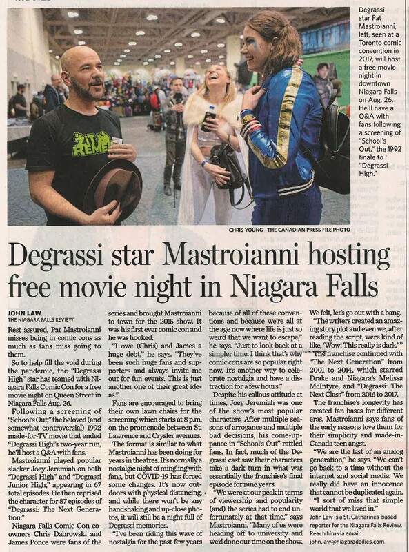 - Mastroianni, Pat / Degrassi High / Niagara Falls Comic Con / COVID-19 pandemic / Dabrowski, Chris / Ponce, James