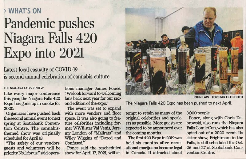 - Pandemic pushes Niagara Falls 420 Expo into 2021 : Latest local casualty of COVID-19 is second annual celebration of cannabis culture