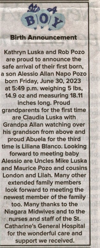 Pozo, Alessio Allan Napo / Parents - Rob Pozo & Kathryn Luska
