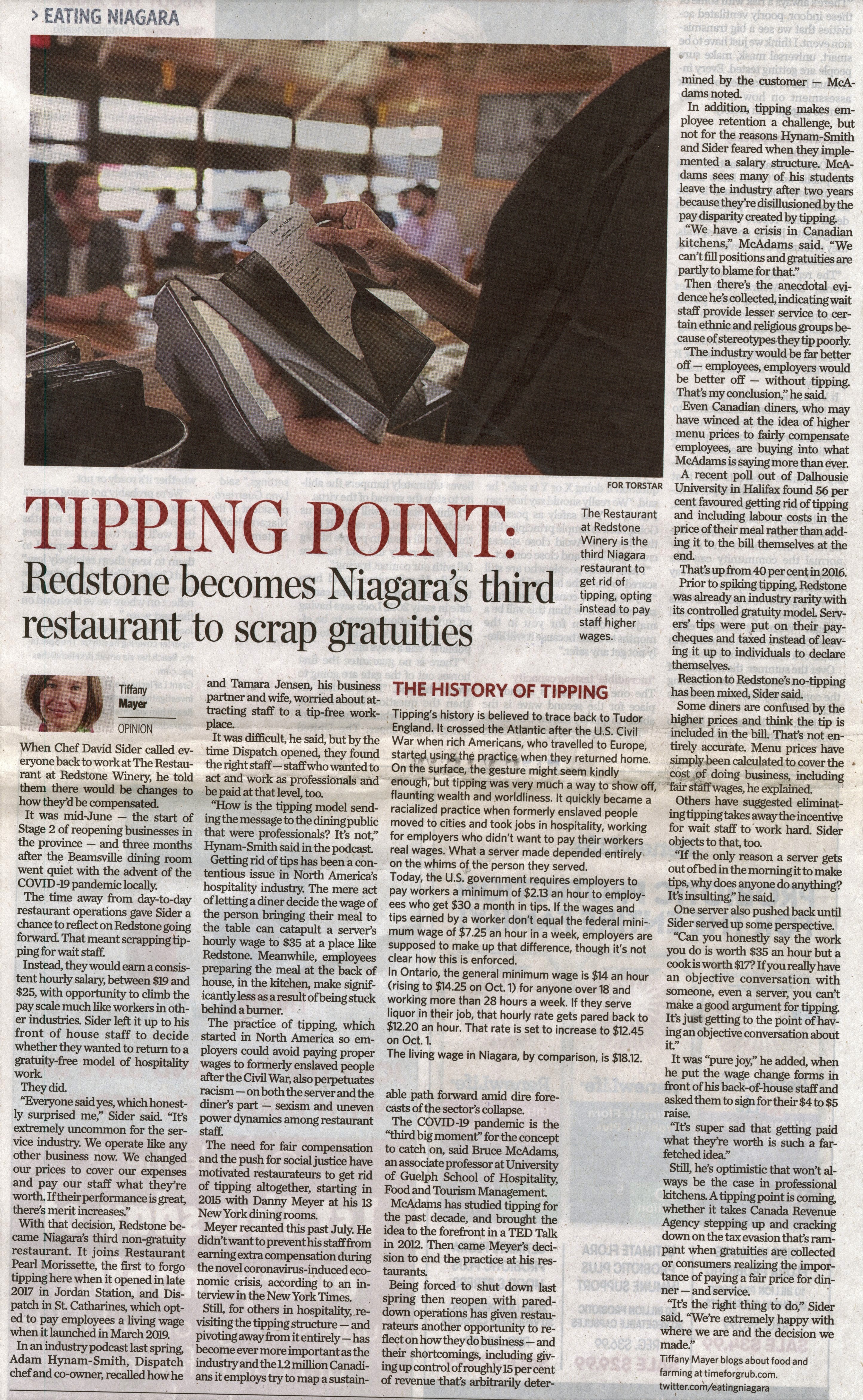 - Tipping Point : Redstone becomes Niagara's third restaurant to scrap gratuities