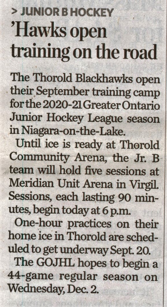 - Greater Ontario Junior Hockey / Thorold Blackhawks / training camp