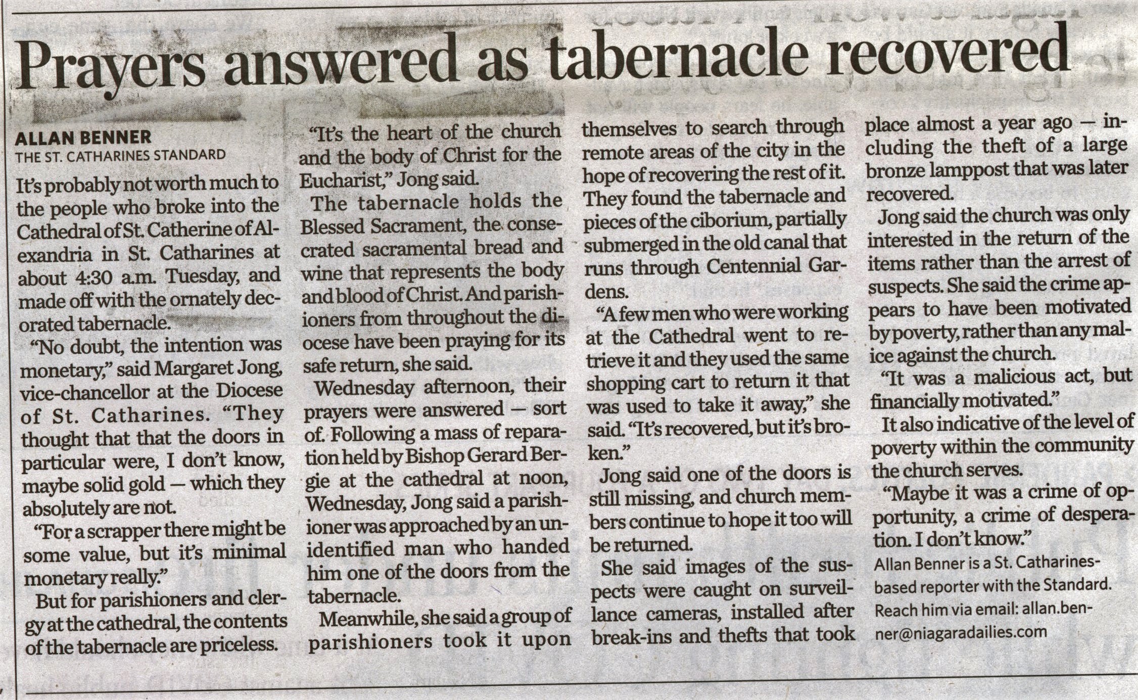 - Jong, Margaret / Cathedral of St. Catharine of Alexandria / tabernacle theft / remote area /