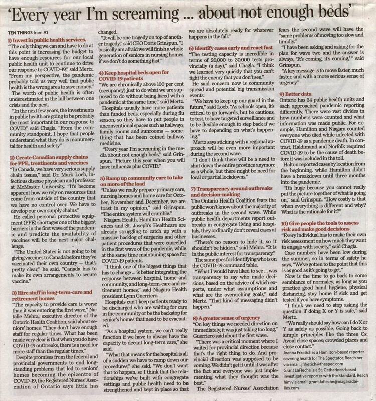 - COVID-19 pandemic / second wave / Niagara Health System / Guerriero, Lynn