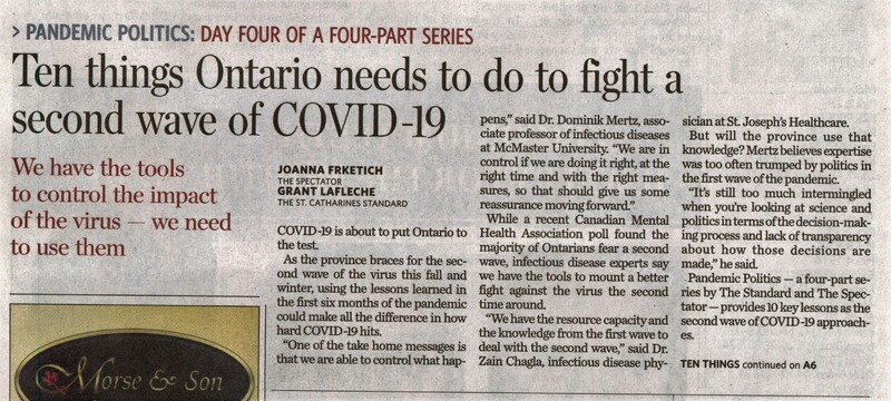 - Pandemic Politics: Day four of a four-part series : Ten things Ontario needs to do to fight a second wave of COVID-19 : We have the tools to control the impact of the virus -- we need to use them