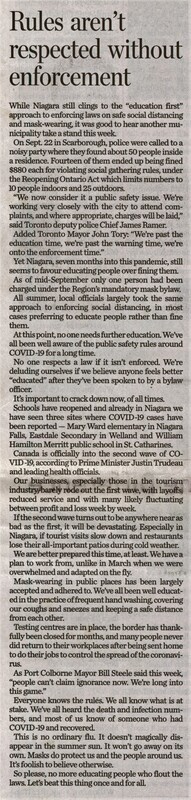 COVID-19 pandemic / mask bylaws / ReOpening Ontario Act / implement fines