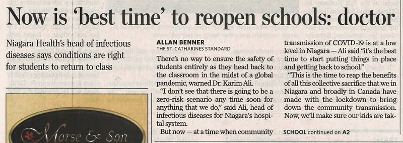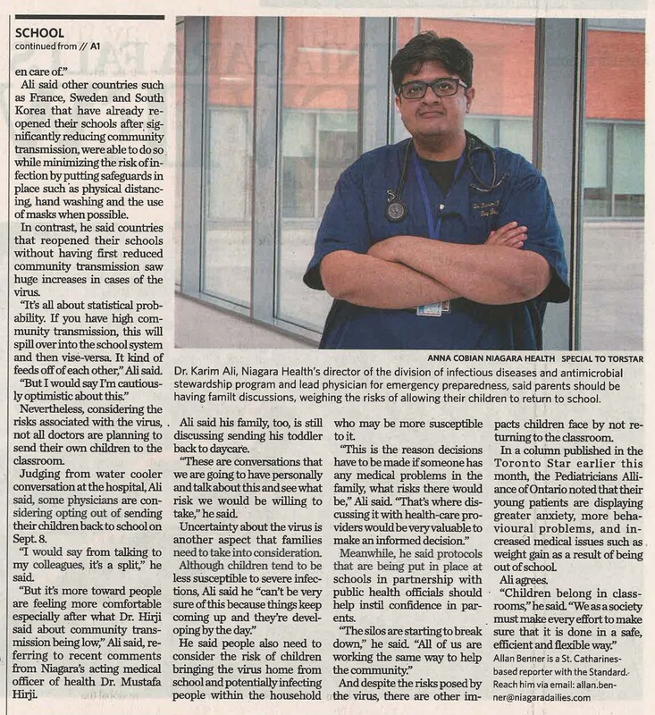 - Ali, Karim Dr. / COVID-19 pandemic / infectious disease / school / Niagara Health