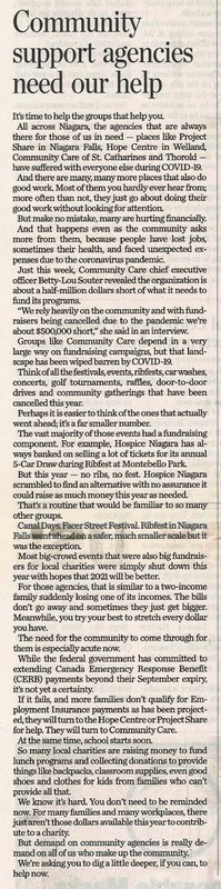 - Project Share / COVID-19 pandemic / Community Care / fundraising / Hope Centre / Hospice Niagara / Ribfest