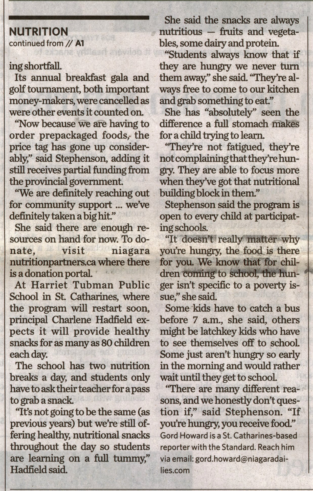 - Niagara Nutrition Partners / Stephenson, Jess / Doyle, Kristal / COVID-19 pandemic / students / School Boards