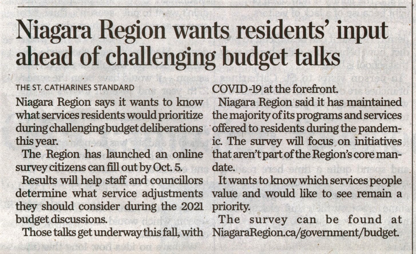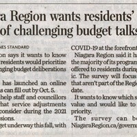 - Niagara Region / budget deliberations / COVID-19 pandemic / on-line survey