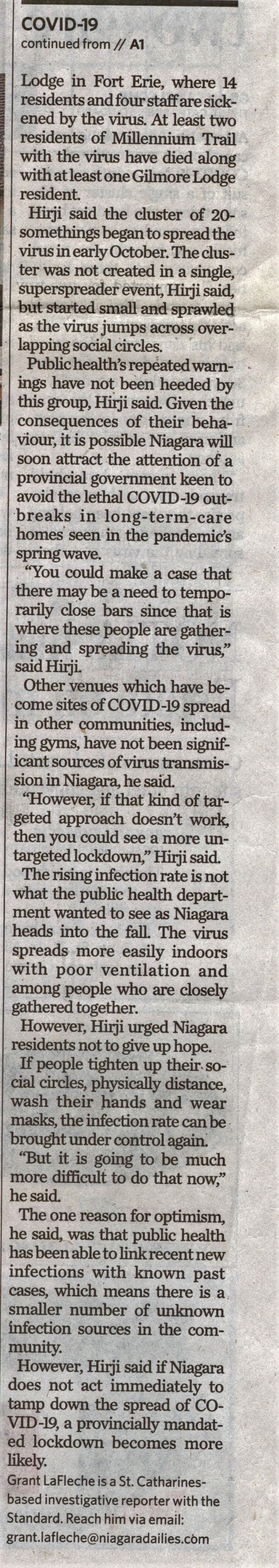 - COVID-19 pandemic / Hirji, Mustafa Dr. / long-term care facilities / rise in cases