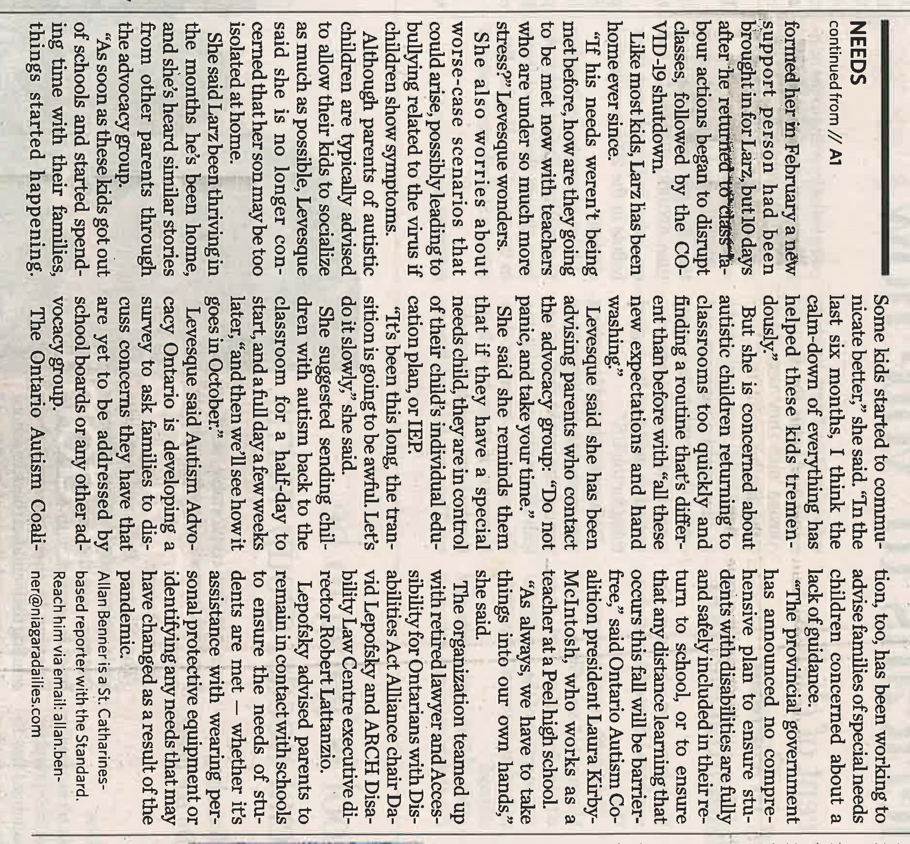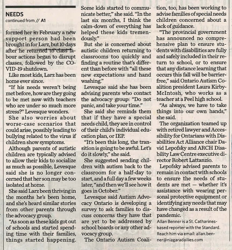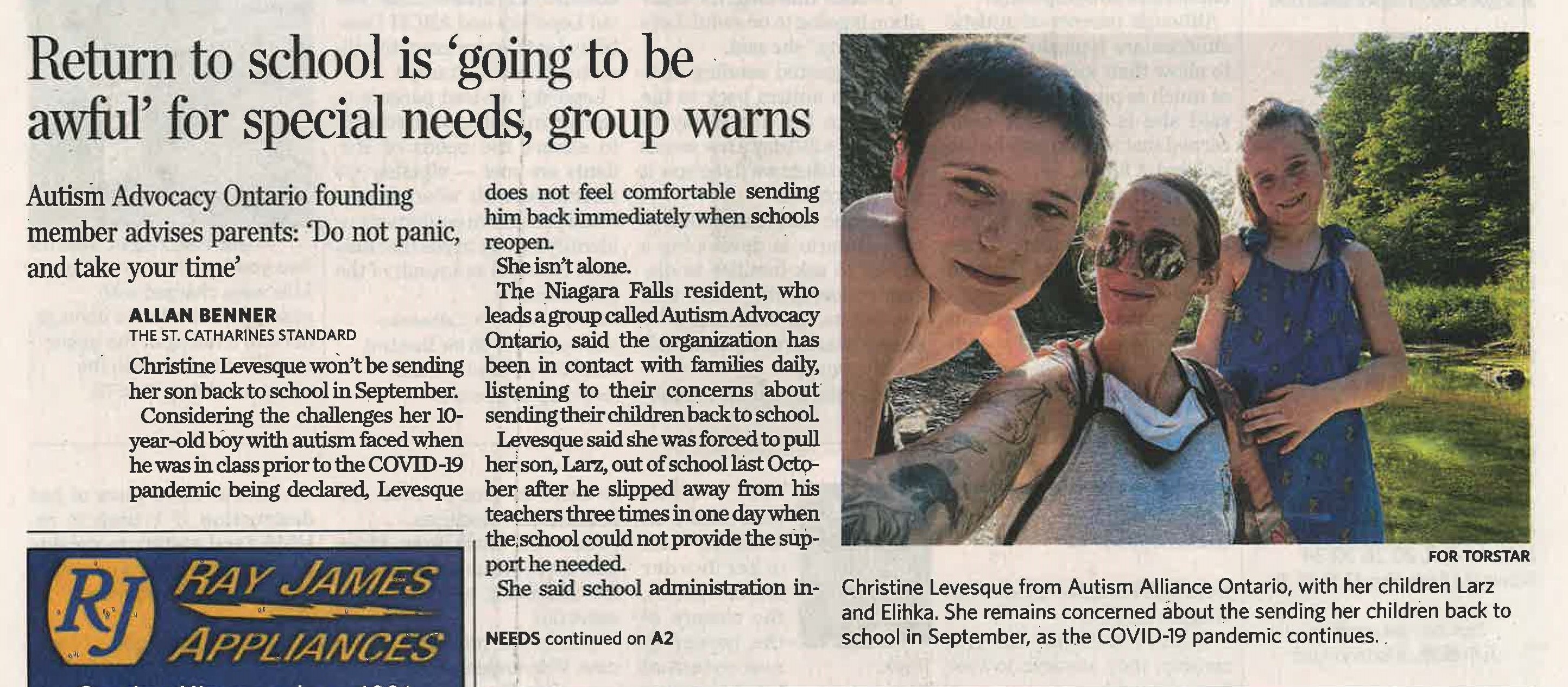 - COVID-19 pandemic / Levesque, Christine / Autism Alliance Ontario / Levesque, Larz / Levesque, Elihka / Autism Advocacy Ontario / school