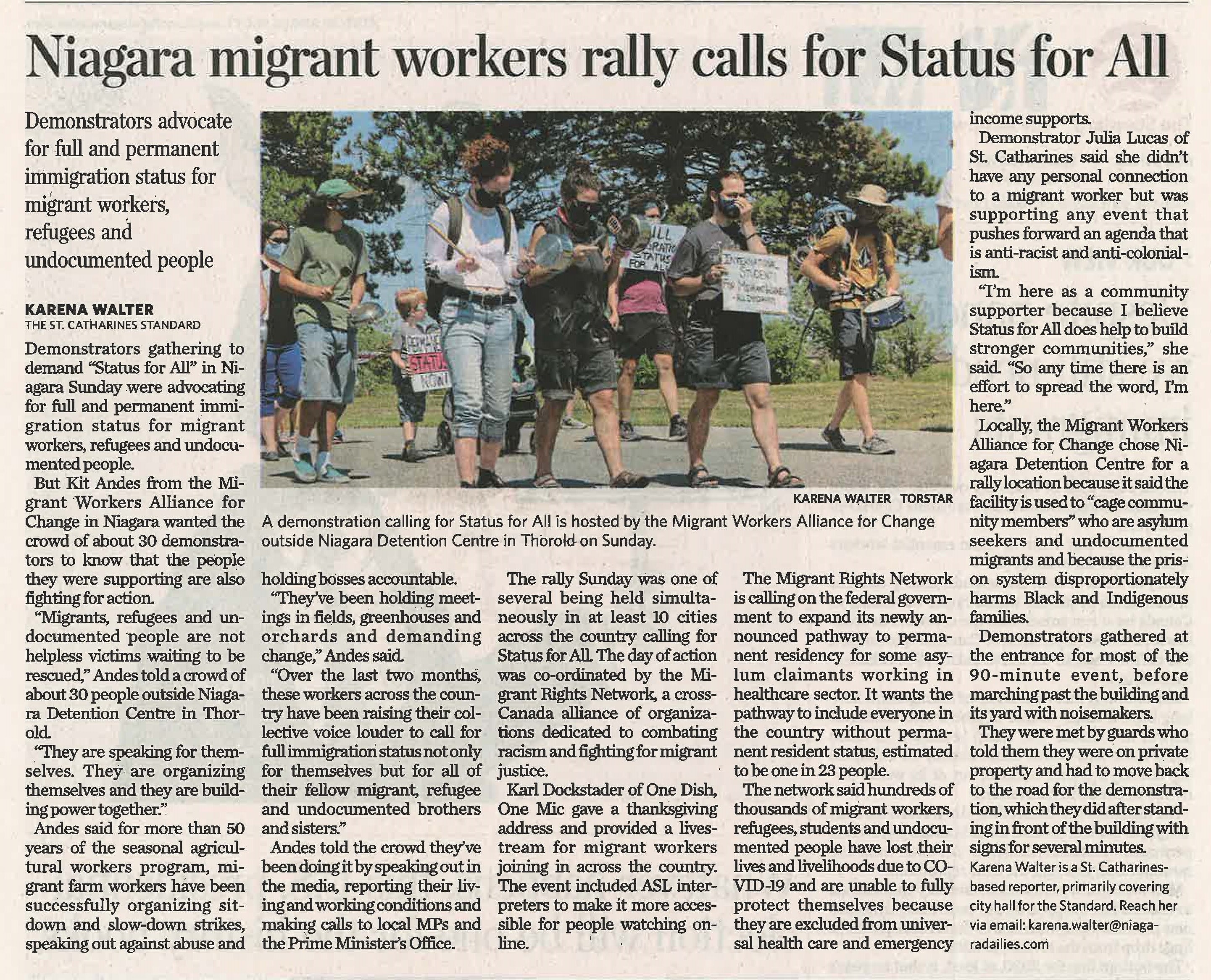 - Niagara migrant workers rally calls for Status for All : Demonstrators advocate for full and permanent immigration status for migrant workers, refugees and undocumented people
