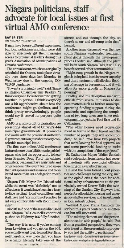 - Niagara politicians, staff advocate for local issues at first virtual AMO conference