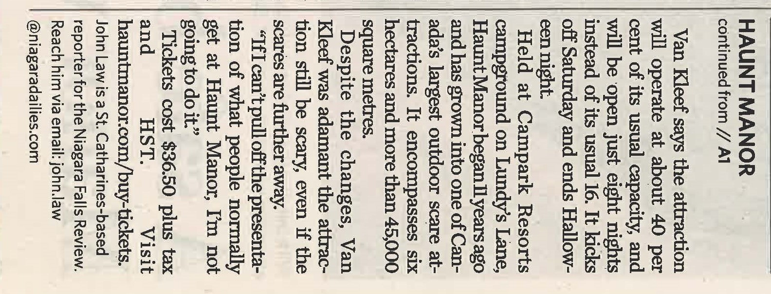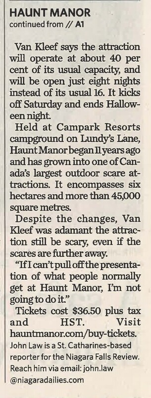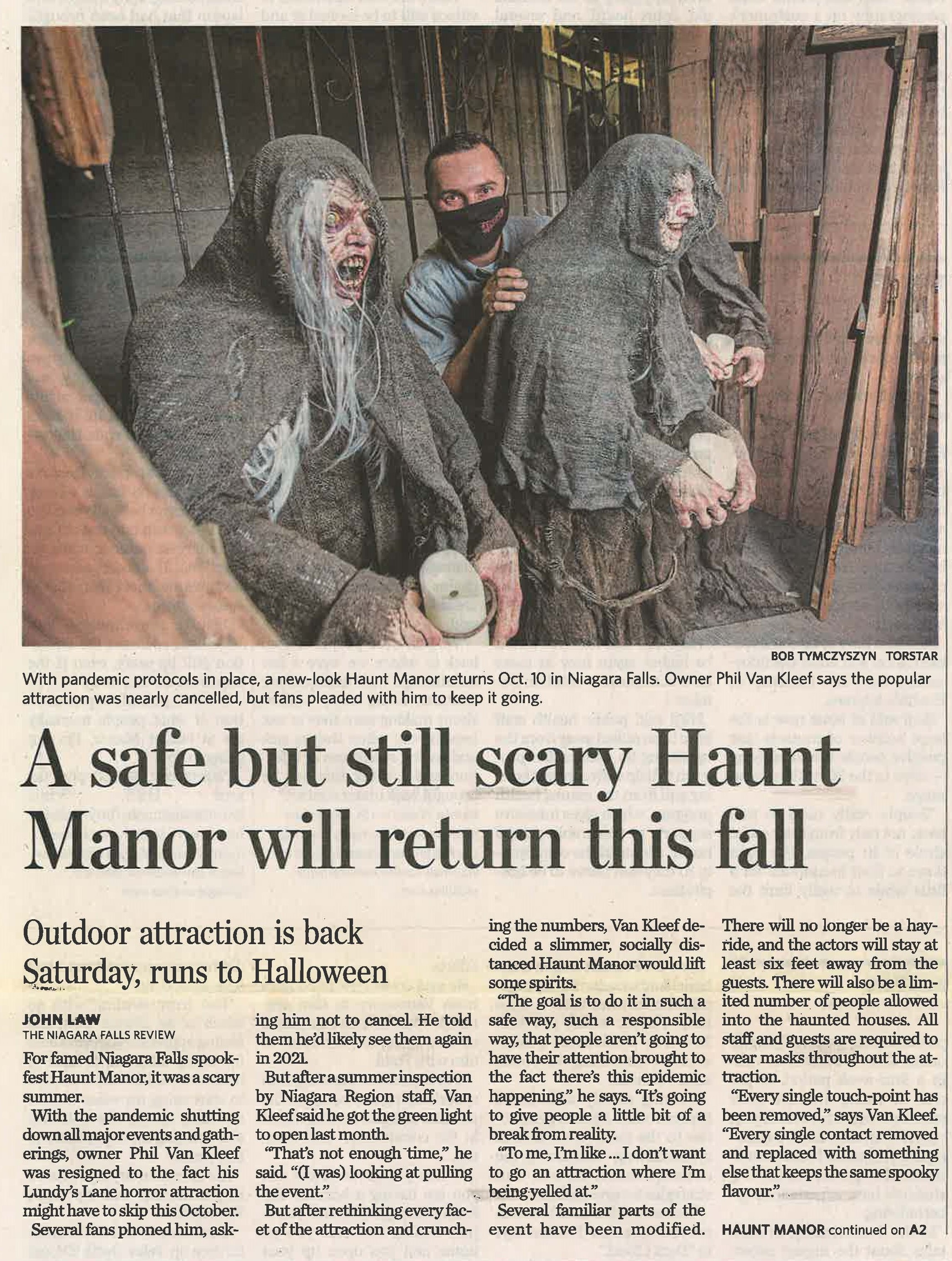 - A safe but still scary Haunt Manor will return this fall : outdoor attraction is back Saturday, runs to Halloween