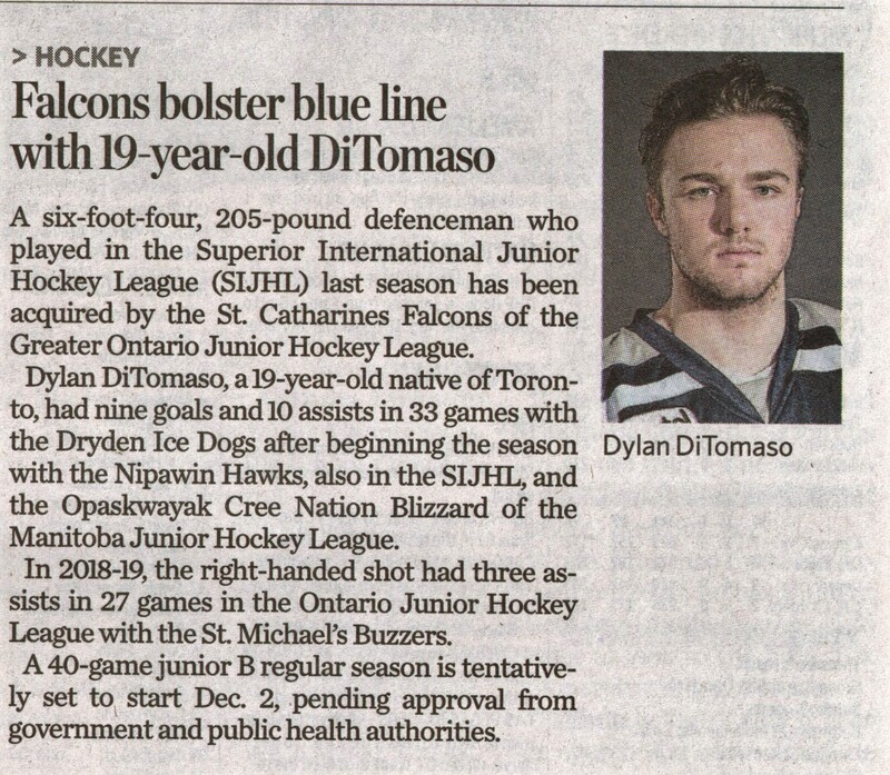 - Falcons bolster blue line with 19-year-old DiTomaso
