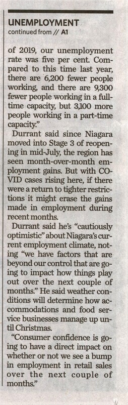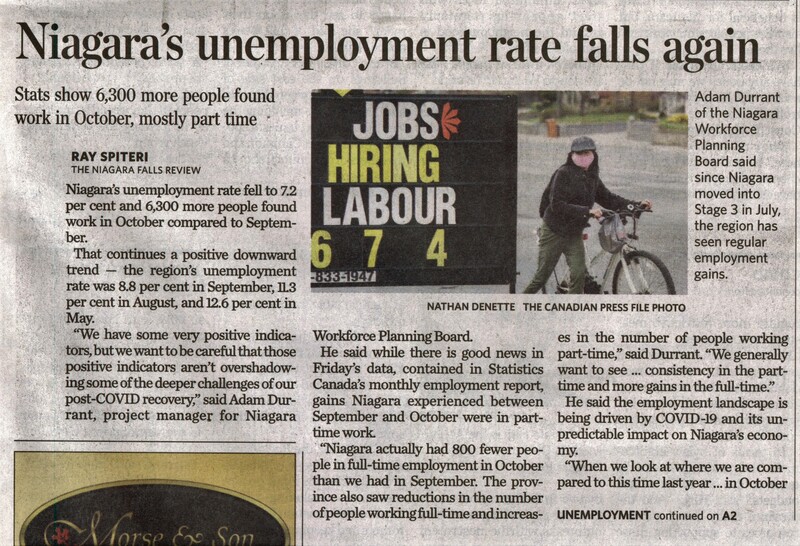 - Durrant, Adam / Niagara Workforce Planning Board / COVID-19 pandemic / Niagara economy / unemployment dropped