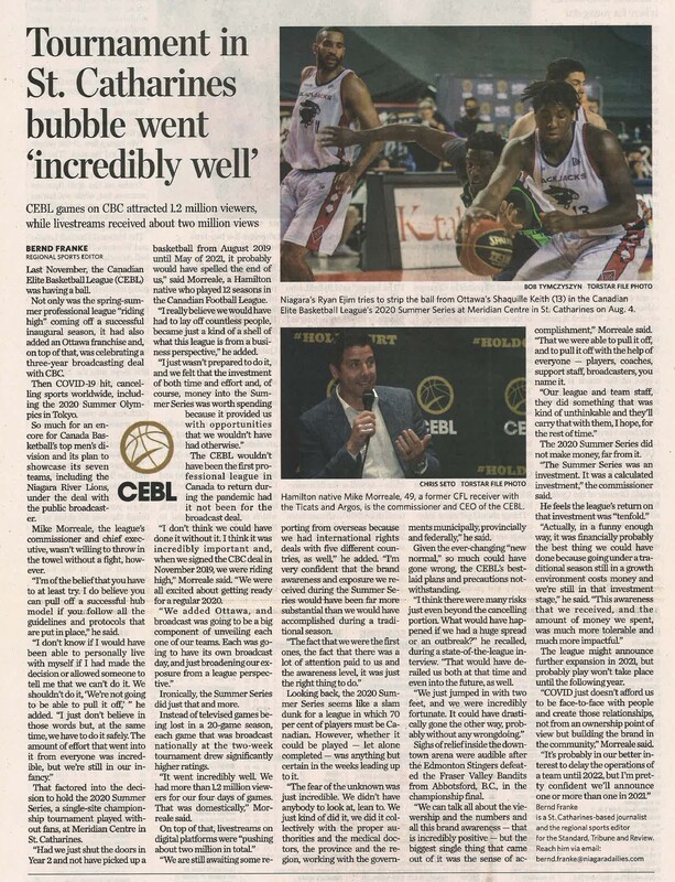 Tournament in St. Catharines bubble went incredibly well : CEBL games on CBC attracted 1.2 million viewers, while livestreams received about two million views