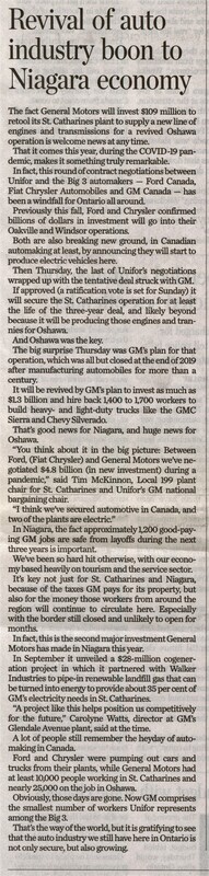 - COVID-19 pandemic / Unifor / General Motors / 109 million investment / McKinnon, Tim / Watts, Carolyne / economy